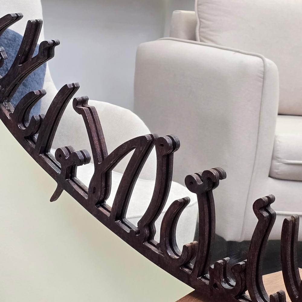 - تصميم بيضاوي بإطار خشبي مزين بحروف من الخط العربي