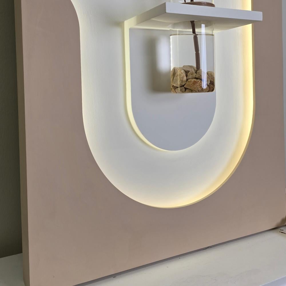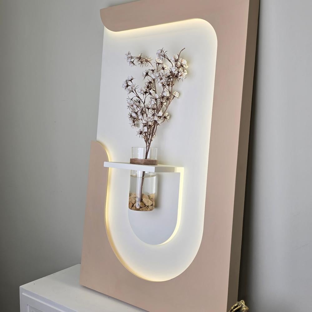- لوحة جدارية من الخشب تحتوي على إضاءة LED دافئة