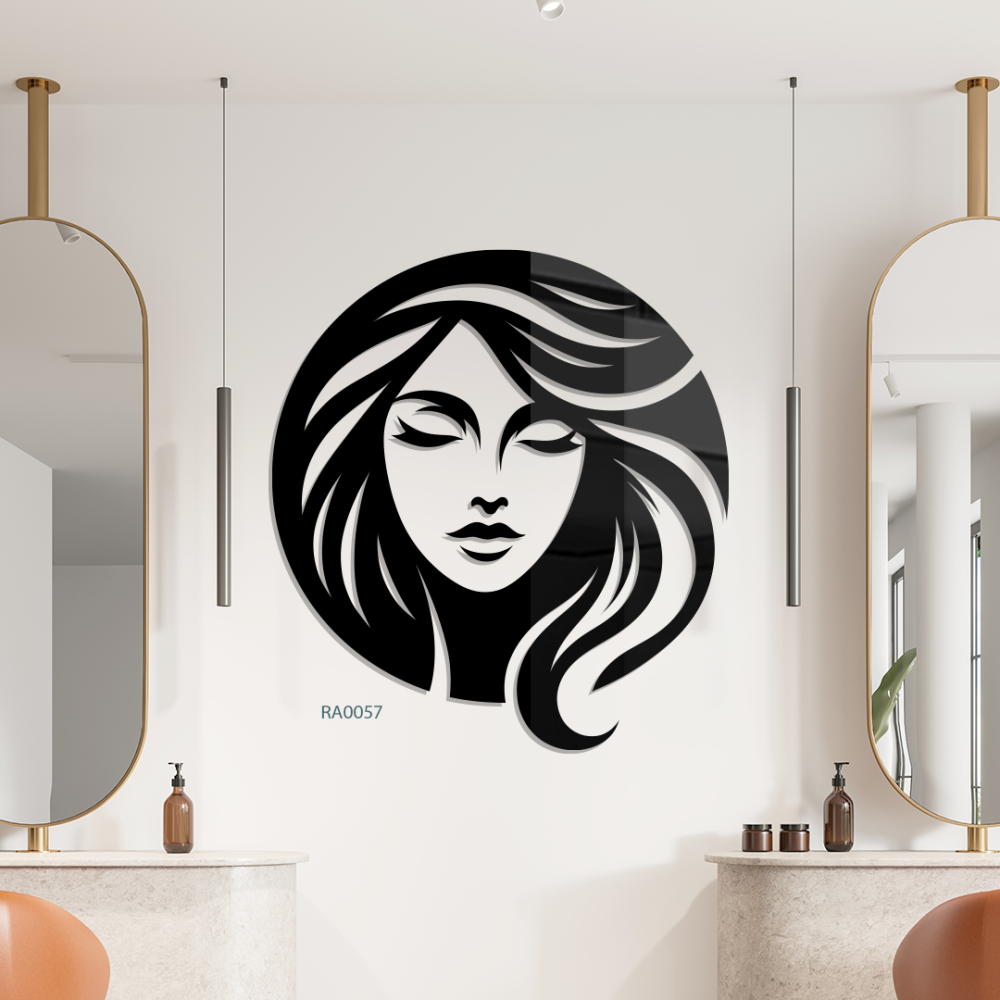 لوحة جدارية أكريليك مصممة بشكل دائري، تصور وجه فتاة بتفاصيل ملامح وشعر واضحة، مما يضفي إحساسًا بالرقي والجمال. يتميز التصميم بخطوط ناعمة وانسيابية تُبرز ملامح الوجه بتوازن فني، مع عناية خاصة بتفاصيل الشعر الذي يُكمل الدائرة بشكل متناغم.تعتبر هذه اللوحة مثالية لتزيين المساحات في مراكز التجميل، صالونات العناية بالشعر، أو الأماكن العصرية التي تسعى لإضفاء لمسة أنيقة وعصرية. التصميم المستدير يضفي تناغمًا بصريًا ويمنح المساحة إحساسًا بالانسجام والتميز.