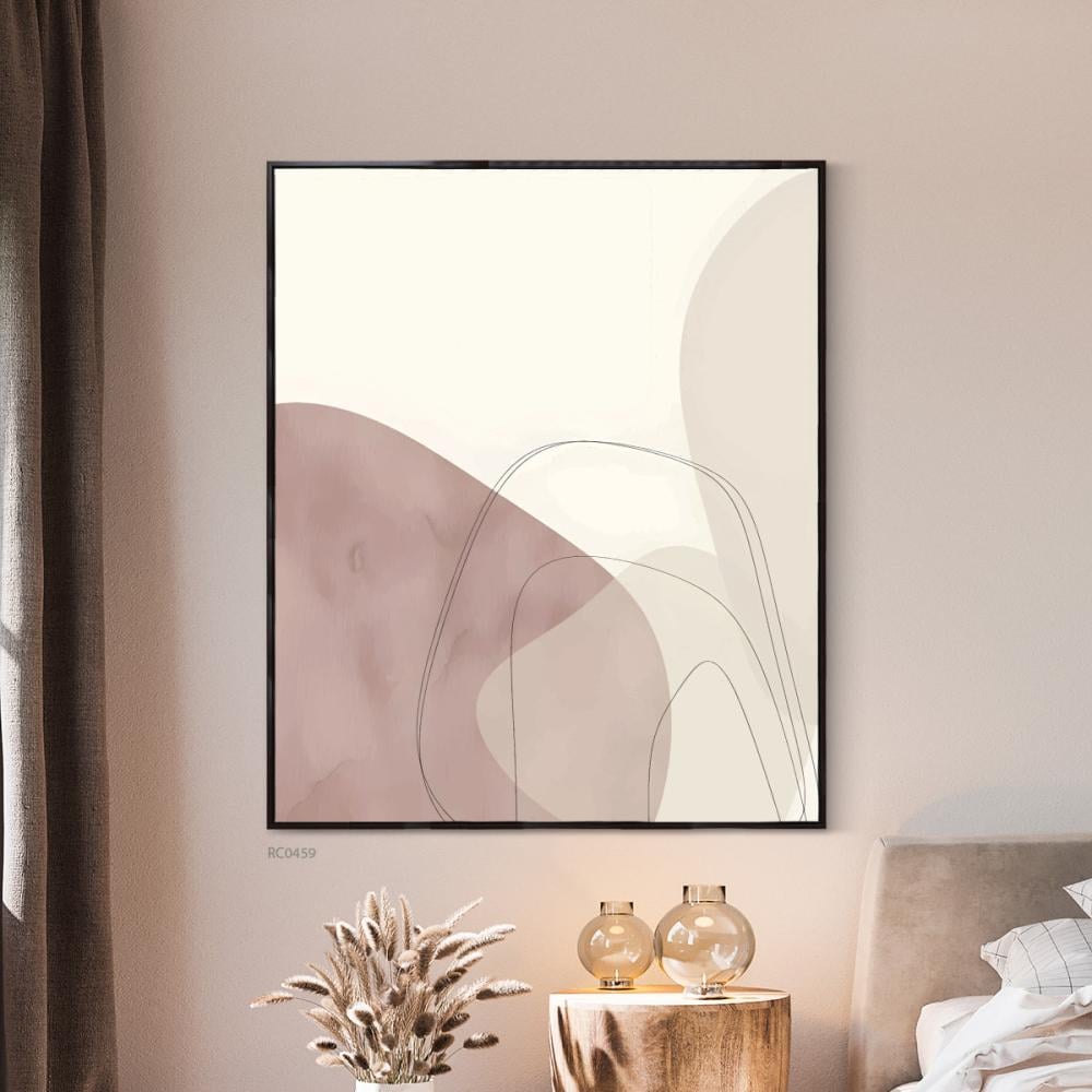 استمتع بجمالية الفن المعاصر مع هذه اللوحة الجدارية الفنية التي تصور تصميمًا تجريديًا لدوائر عشوائية بتأثير الألوان المائية. تتداخل تدرجات الوردي والبي...