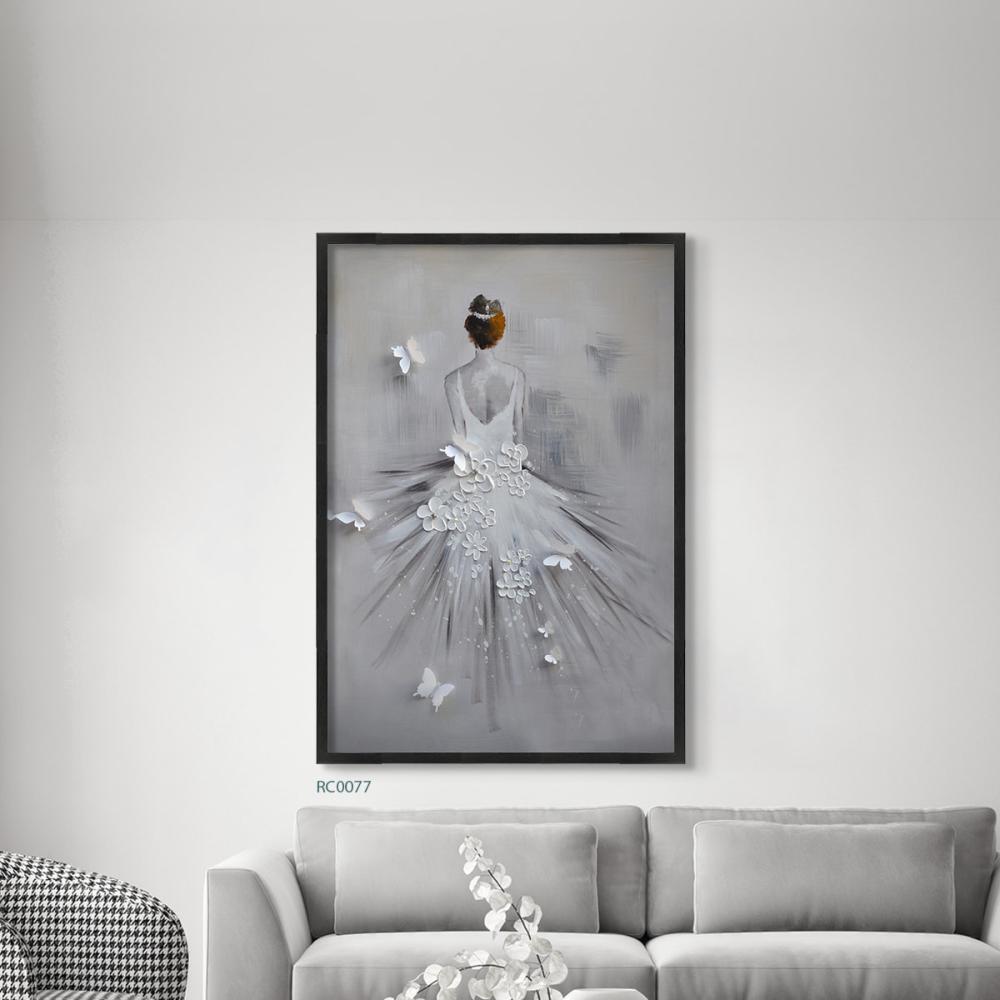 استمتع بجمال هذه اللوحة الجدارية الفنية على قماش الكانفاس، التي تحمل تصميمًا مميزًا يعكس الفنون التشكيلية. تصور اللوحة فتاة بفستان أنيق مزين بفراشات بتدرجات الرمادي والأبيض، مما يضفي لمسة من الرقي والجمال على أي مكان تُعلق فيه. تعتبر هذه اللوحة إضافة مثالية لغرف النوم وغرف المعيشة والممرات.